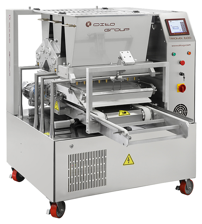 Тестоотсадочная машина DITO Group DUOMIX 600 предназначена для формования на противни методом экструзии тестовых заготовок кондитерских изделий различной формы и размеров из кондитерского теста разнообразной консистенции в пекарнях и кондитерских, на предприятиях пищевой промышленности и общественного питания. Корпус и валы выполнены из нержавеющей стали AISI 304.