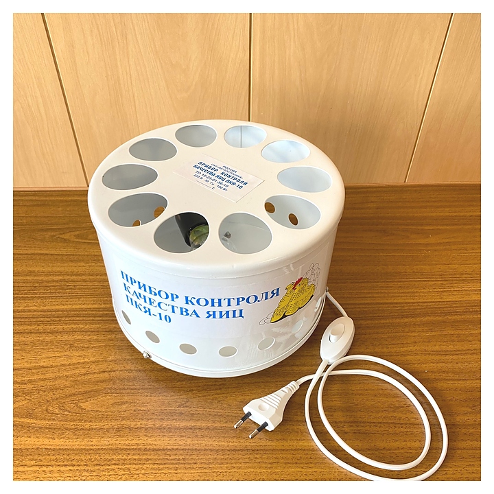 Овоскоп Ветзоотехника ПКЯ-10 предназначен для визуального контроля качества яиц методом просвечивания на предприятиях общественного питания и торговли. Прибор позволяет диагностировать малые и большие пятна под скорлупой, трещины, наличие посторонних включений и мутную внутреннюю среду. Корпус выполнен из металла.