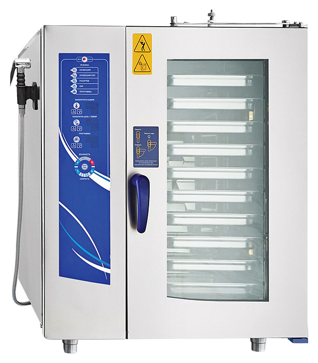 Пароконвектомат Abat ПКА 10-1/1ПМФ2 предназначен для обжаривания, приготовления на пару, бланширования, запекания и других видов тепловой обработки продуктов на на морских судах, на площадках в открытом море и на береговых линиях. Оборудование заменяет сразу несколько видов приборов: плиту, конвекционную печь, жарочный шкаф, духовку, опрокидывающуюся сковороду, пищеварочный котел, фритюрницу и др. Приготовленные в пароконвектомате блюда сохраняют все полезные вещества. Модель оснащена подсветкой, легкосъемным жировым фильтром, душем для мойки и дверью с двойным остеклением.