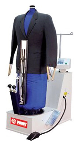 Пароманекен PONY MG используется на предприятиях, в отелях, прачечных, химчистках для финишной обработки пальто, курток, платьев и другой одежды. Модель оснащена встроенным микропроцессором с дисплеем, встроенным вентилятором, электробойлером, передней и задней прижимными планками, 2 специальными зажимами, 2 растягивателями рукавов и поясным ремнем.