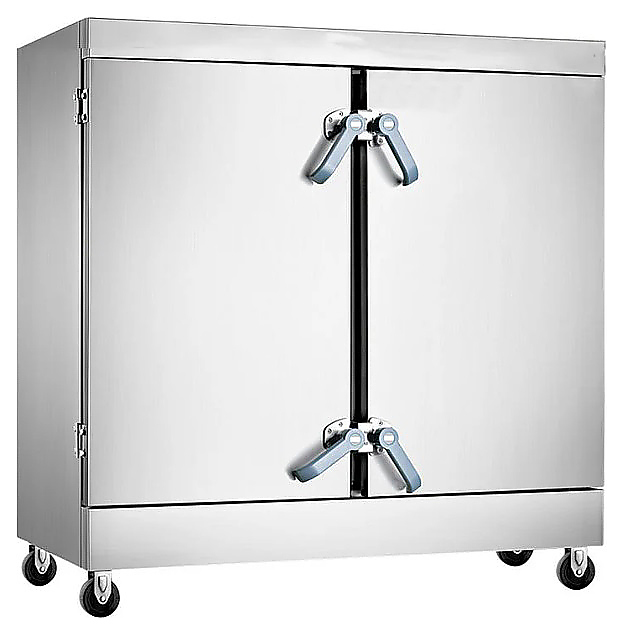 Пароварка Kocateq RS24NWset используется на предприятиях общественного питания и торговли, в госпиталях, школах и детских садах для приготовления на пару диетических продуктов, большого количества полуфабрикатов и заготовок овощных салатов, разогрева приготовленных блюд и быстрого размораживания продуктов питания. Модель оснащена 2 дверьми с поворотными запорными ручками, предохранительным клапаном и колесами. Корпус выполнен из нержавеющей стали AISI 201, дверные уплотнения - из силикона.