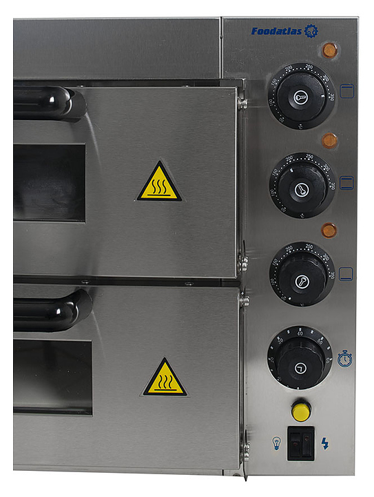 Печь для пиццы Foodatlas HEP-2ST используется на предприятиях общественного питания и торговли для выпечки пиццы и хлеба. Модель оснащена механической панелью управления, 3-мя электрическими ТЭНами, регулятором температуры, индикатором нагрева, смотровым стеклянным окном и каменным подом. Внутренняя поверхность и направляющие выполнены из алюминия, внешняя - из нержавеющей стали S/S 201.