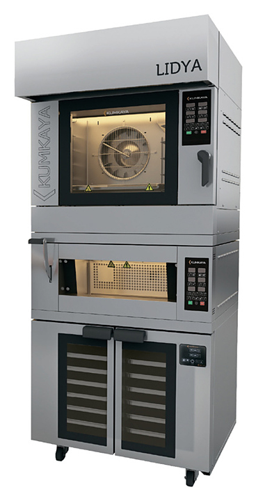 Комбинированная печь Kumkaya LIDYA 5 предназначена для выпекания или разогрева пиццы, кондитерских и хлебобулочных изделий, различных блюд, замороженных или предварительно выдержанных в расстоечном шкафу заготовок из теста на предприятиях общественного питания и торговли. Модель оснащена цифровыми панелями управления и стеклянными дверцами для контроля за процессом выпекания. Камеры выпекания и облицовка корпусов всех элементов оборудования выполнены из нержавеющей стали.