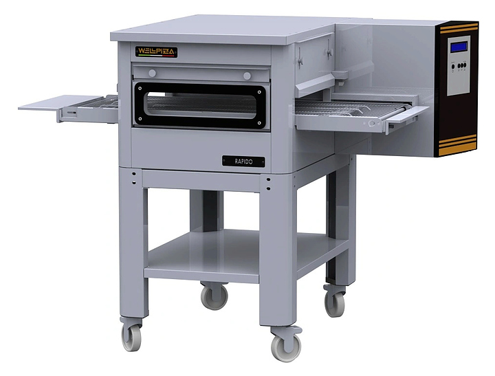 Конвейерная печь WLBake WellPizza Rapido 20 используется в пиццериях, ресторанах, на предприятиях общественного питания и торговли для выпекания разных видов пиццы. Модель оснащена электронной панелью управления, смотровым окном, позволяющим следить за процессом приготовления, одновременно являющимся дверцей для чистки и обслуживания. Корпус выполнен из нержавеющей стали.