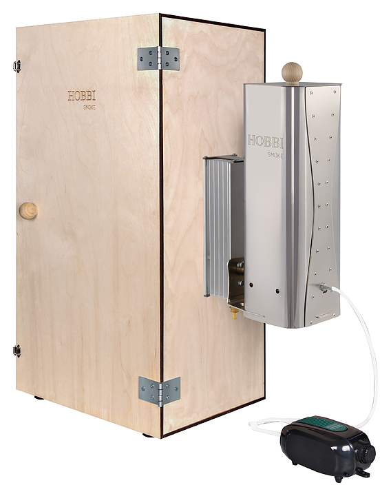 Коптильная камера Hobbi Smoke Симпл используется совместно с дымогенератором, предназначена для размещения мяса, рыбы, птицы и овощей и приготовления их методом холодного копчения на предприятиях общественного питания и торговли, а также в частных домах и квартирах. Модель оснащена отверстием для выхода дыма, универсальным отверстием для крепления дымогенератора, деревянными рейками-вешалами и крючками. Корпус выполнен из фанеры ФК сорт 2/2.