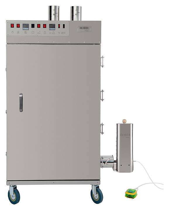 Термокамера Hobbi Smoke 90 предназначена для приготовления мяса, рыбы, птицы и овощей методом холодного или горячего копчения на предприятиях общественного питания и торговли. Модель оснащена дымогенератором и отверстием для выхода дыма. Корпус выполнен из нержавеющей стали AISI 430 и AISI 304.