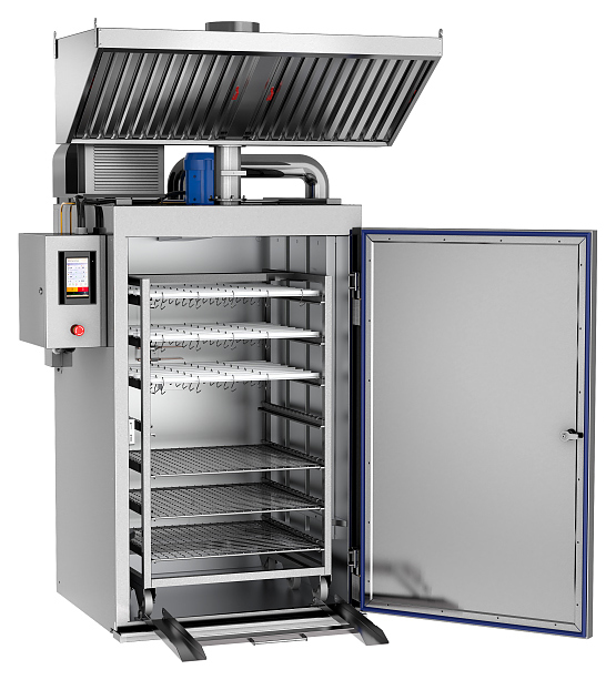 Универсальная термокамера Ижица UNI-100 предназначена для горячего и холодного копчения мяса, рыбы, птицы, сала и сыра в коптильных цехах, в фермерских хозяйствах, на предприятиях общественного питания и торговли. Модель оснащена щеповым дымогенератором из нержавеющей стали и сенсорной панелью управления. Внутренний объем камеры выполнен из нержавеющей стали, петли и запорные механизмы - из нержавеющей стали с большим запасом прочности, уплотнение двери - из термостойкого силикона.