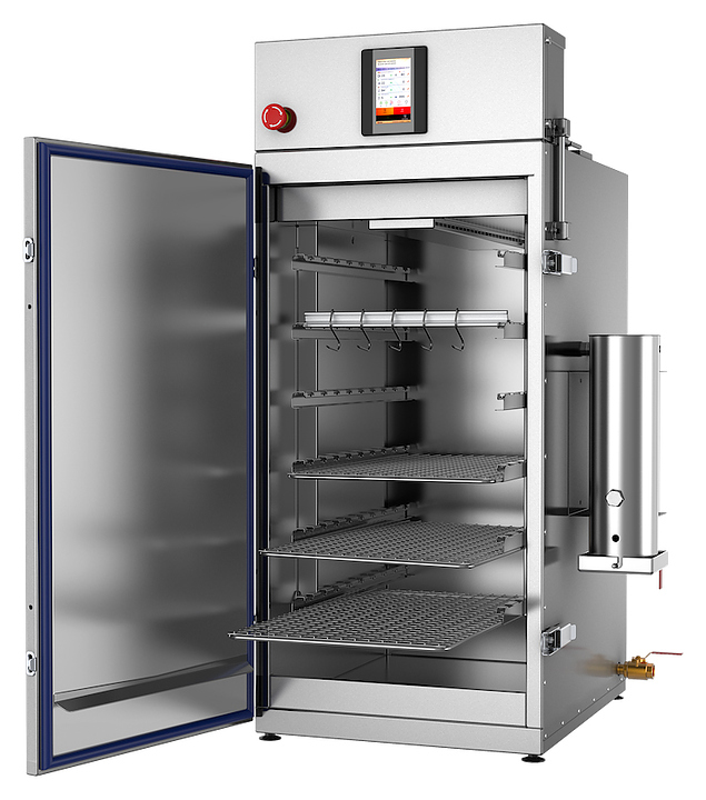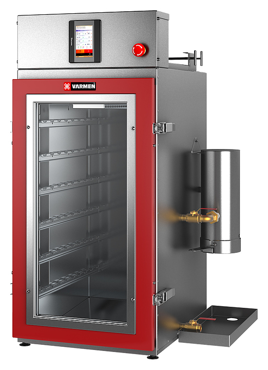 Универсальная термокамера Ижица Varmen Mini предназначена для термической и дымовой обработки мяса, рыбы, птицы, сала и сыра в небольших коптильных цехах, в фермерских хозяйствах, на предприятиях общественного питания и торговли. Модель оснащена щеповым дымогенератором из нержавеющей стали, сенсорной панелью управления и смотровым окном. Внутренний объем камеры выполнен из нержавеющей стали, петли и запорные механизмы - из нержавеющей стали с большим запасом прочности, уплотнение двери - из термостойкого силикона, теплоизоляция камеры - из жесткой минеральной ваты с пропиткой от слеживания.