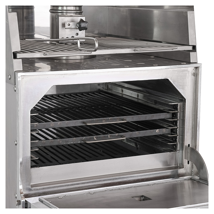Угольный гриль-мангал Kocateq G 25 HJX BK предназначен для приготовления мяса, рыбы, овощей и других продуктов с использованием углей на предприятиях общественного питания и торговли. Модель оснащена шибером для регулировки интенсивности горения. Дверь покрыта жаропрочной эмалью черного цвета.