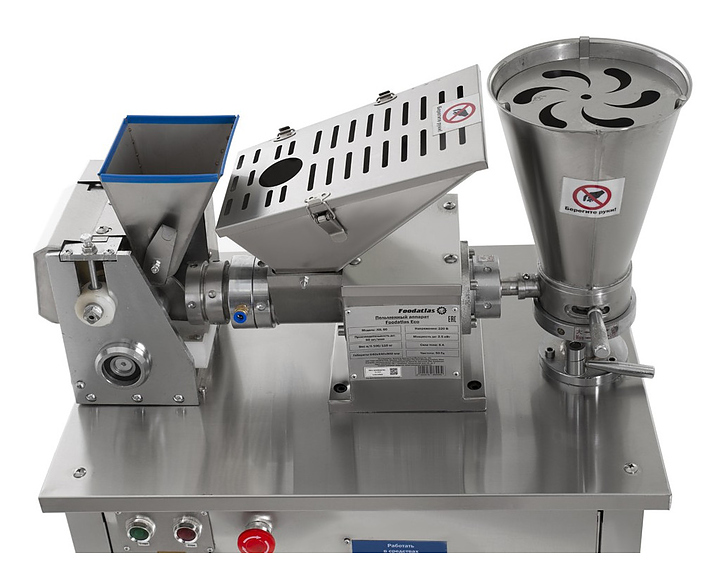 Пельменный аппарат Foodatlas JGL 60 Eco используется на предприятиях общественного питания и торговли для производства пельменей, равиоли и вареников с разнообразными начинками. Модель оснащена панелью управления в виде блока кнопок Стоп/Пуск и Аварийная остановка, двухступенчатым лопастным насосом, бункером для фарша, бункером для муки, шнеком и формовочным барабаном, имеющим фигурные вырезы. Все детали, контактирующие с пищевыми продуктами, выполнены из нержавеющей стали или покрыты антикоррозийными материалами, соответствующими санитарным требованиям.