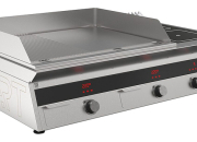 Гриль имеет 2 зоны с комбинированной поверхностью и расположен слева