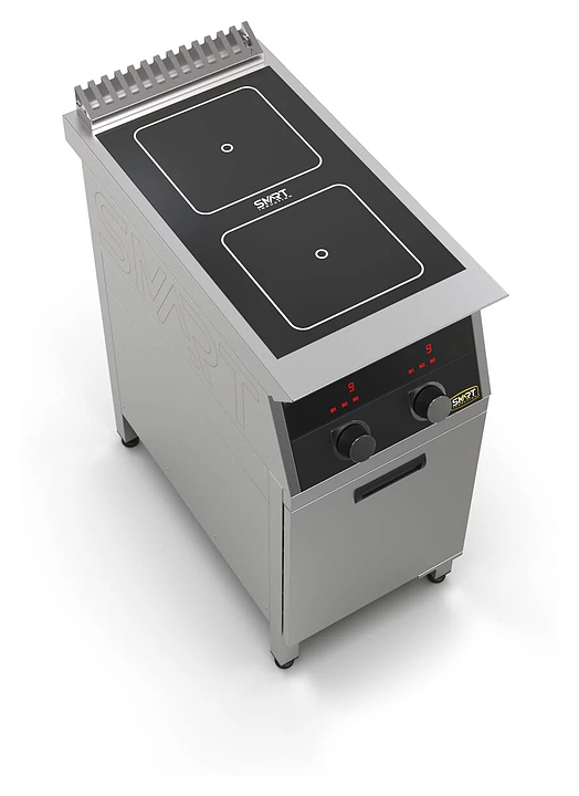 Индукционная плита SMART INDUCTION C72-35B предназначена для приготовления и быстрого разогрева блюд на предприятиях общественного питания и торговли. Модель оснащена электронно-механической панелью управления с индикацией, съемным жировым фильтром для отделения жира и влаги от поступающего внутрь аппарата воздуха и регулируемыми по высоте ножками. Корпус, столешница и воздуховод выполнены из нержавеющей стали AISI430, рабочая поверхность - из стеклокерамики, передняя панель имеет стойкое полимерное покрытие черного цвета.