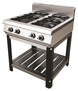 Газовая плита KAYMAN ПГ-4-11-K предназначена для приготовления приготовления первых, вторых и третьих блюд в наплитной посуде на предприятиях общественного питания и торговли. Модель оснащена системой "газ-контроль" и ручным розжигом (зажигалка). Плита выполнена из нержавеющей стали, разборная подставка - из нержавеющей стали, покрытой порошковой краской, решетки - из стали с покрытием.