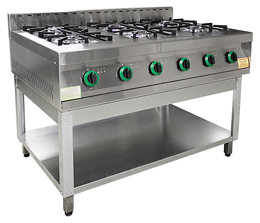 Газовая плита Пищевые Технологии ПГ-6-01 предназначена для приготовления первых, вторых и третьих блюд в наплитной посуде на предприятиях общественного питания и торговли. Модель может использоваться самостоятельно, а также в составе технологических линий. Основание, подставка, задние и боковые обшивки плиты выполнены из оцинкованной стали, каркас - сварен из квадратной трубы Ст3, окрашенной порошковой краской, верх плиты, вытяжка и пульт управления - из нержавеющей стали, решетки - из чугуна.