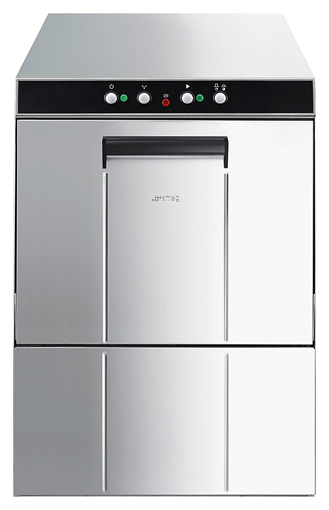 Посудомоечная машина с фронтальной загрузкой Smeg SPD500 серии Ecoline используется на предприятиях общественного питания и торговли для мойки столовых приборов, тарелок, стаканов, чашек и другой посуды. Модель оснащена электромеханической панелью управления и регулируемыми по высоте ножками. Корпус выполнен из нержавеющей стали AISI 304, моющий и ополаскивающий рукав из нержавеющей стали, задняя панель из гальванизированной стали, фильтр моечного бака из пластика.