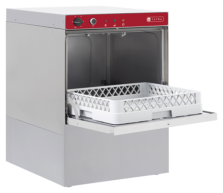 Посудомоечная машина с фронтальной загрузкой Tatra TW.F50 предназначена для мойки посуды, кухонных принадлежностей, стаканов, чашек и столовых приборов на предприятиях общественного питания и торговли. Модель оснащена электромеханическим управлением. Корпус выполнен из нержавеющей стали AISI 304.