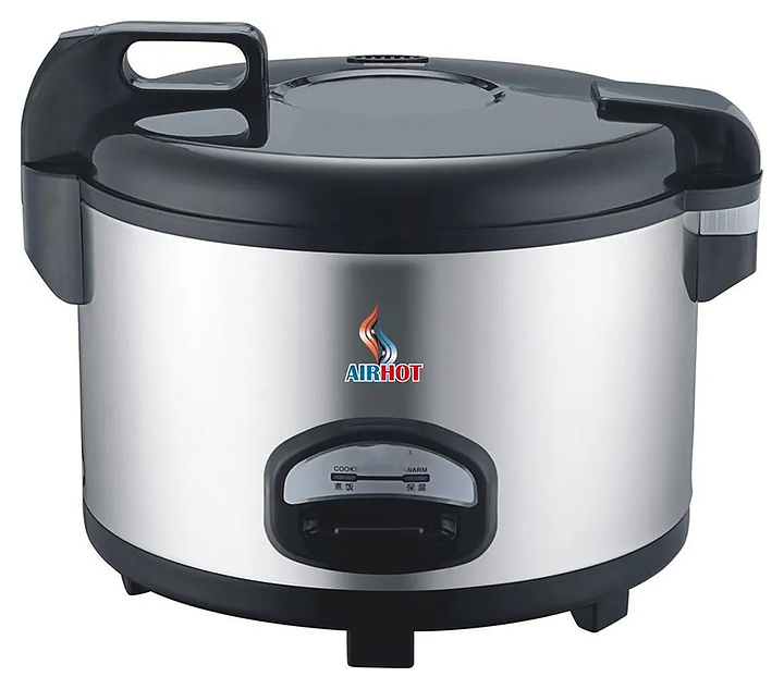 Рисоварка Airhot RC-180 предназначена для приготовления и хранения в подогретом состоянии отварного риса, а также овощей, мяса, рыбы и мучных блюд в суши-барах, ресторанах, кафе и на других предприятиях общественного питания и торговли. Модель оснащена внешней емкостью с 2 рукоятками, съемным резервуаром, крышкой с паровыми отверстиями, устойчивыми опорами, панелью управления с выключателем и светодиодными индикаторами. Емкость выполнена из нержавеющей стали, основание и крышка – из черного полимера.