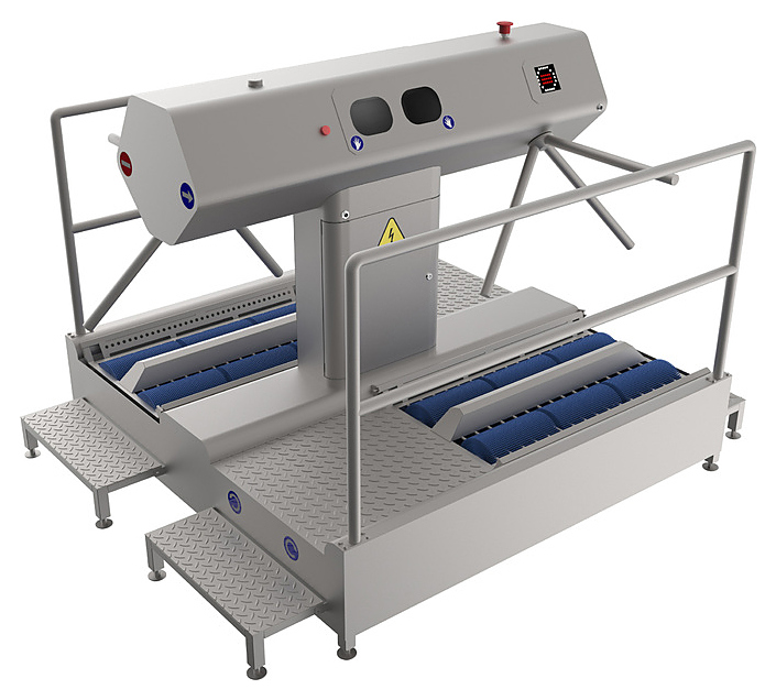 Санпропускник Азимут ДМГ-005 предназначен для очистки и дезинфекционной обработки кистей рук и подошв обуви на входе и контроле выхода чистых помещений в производственных цехах. Модель оснащена светодиодным дисплеем, 4 форсунками в моющей камере и программируемой электронной системой с эффективным контроллером. Изделие выполнено из нержавеющей стали AISI304.