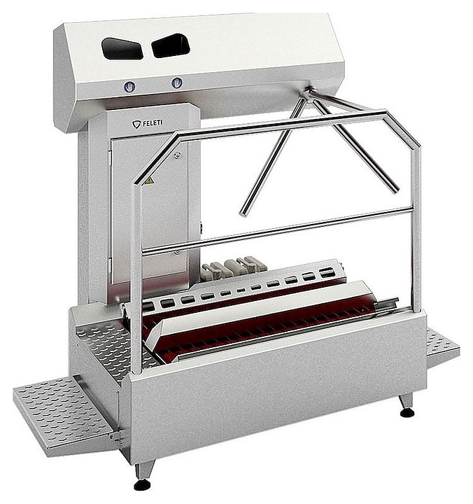 Станция гигиены рук и обуви FELETI SO-3 предназначена для автоматической мойки, дезинфекции рук и обуви персонала перед входом в санитарную зону на предприятиях общественного питания и торговли. Модель оснащена модулем дезинфекции и чистки подошв обуви и модулем дезинфекции кистей рук. Корпус выполнен из пищевой нержавеющей стали AISI 304.