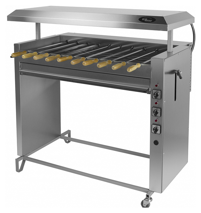 Шашлычница электрическая Grill Master Ф3ШЭ предназначена для предприятий общественного питания и позволяет готовить одновременно на 10 шампурах. Подъёмная крыша регулирует уровень тепловой обработки продукта. Автоматическое вращение шампуров обеспечивает равномерное приготовление. Шашлычница выполена на подставке с колесами что делает её мобильной, а стопоры на колёсах позволят безопасно зафиксировать прибор в любом месте. Выполнена полностью из нержавеющей стали.