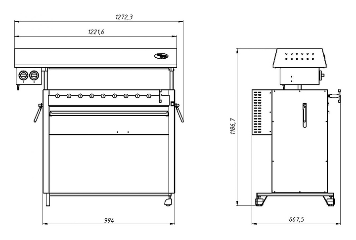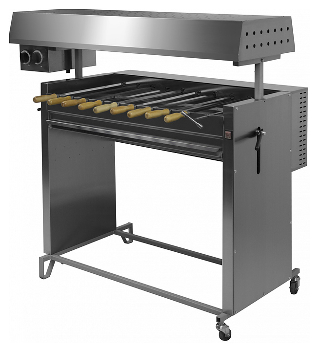 Газовая шашлычница Grill Master Ф2ШГ предназначена для приготовления шашлыков, кур, мяса и прочих продуктов на предприятиях общественного питания и уличной торговли. Модель оснащена подъемной крышей для регулировки степени тепловой обработки продуктов, 2 газовыми кранами с системой газ-контроль для защиты от утечек газа и 2 колесами для удобства перемещения. Автоматически вращающиеся шампуры обеспечивают равномерность приготовления вкусной пищи. Изделие выполнено из нержавеющей стали, отличающейся прочностью и долговечностью.