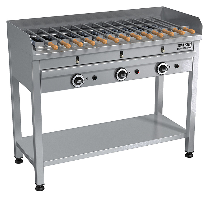 Шашлычница Вулкан BPD 03 "Кастель" предназначена для жарки различных продуктов предприятиях общественного питания и торговли. Модель в напольном исполнении оснащена газ-контролем, пьезорозжигом, запальной горелкой и защитным бортом от разбрызгивания.