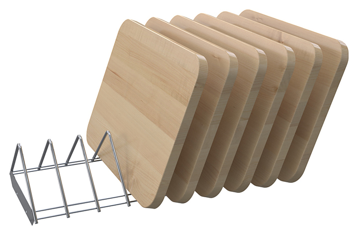Полка используется совместно с ATESY ШЗДП-4-1200-02 на предприятиях общественного питания и торговли для размещения кухонных досок. Аксессуар выполнен из стали AISI 304.