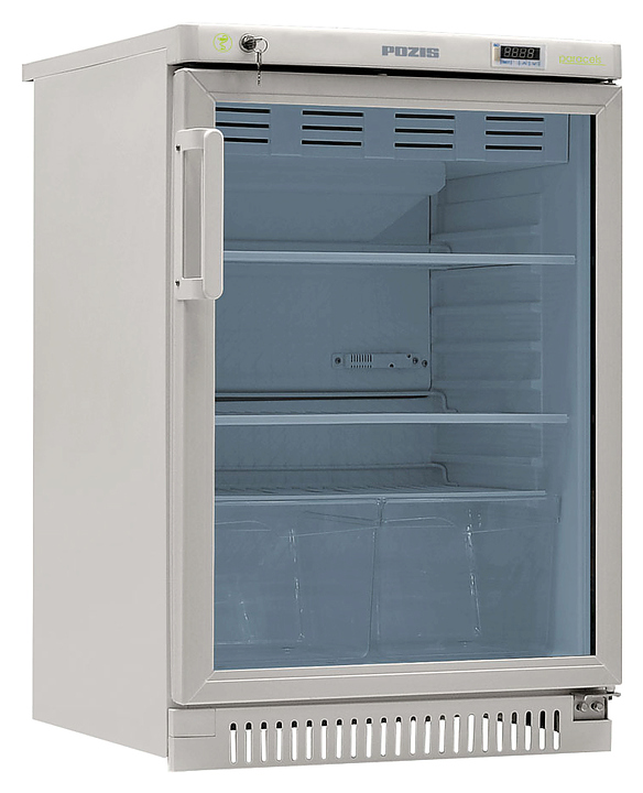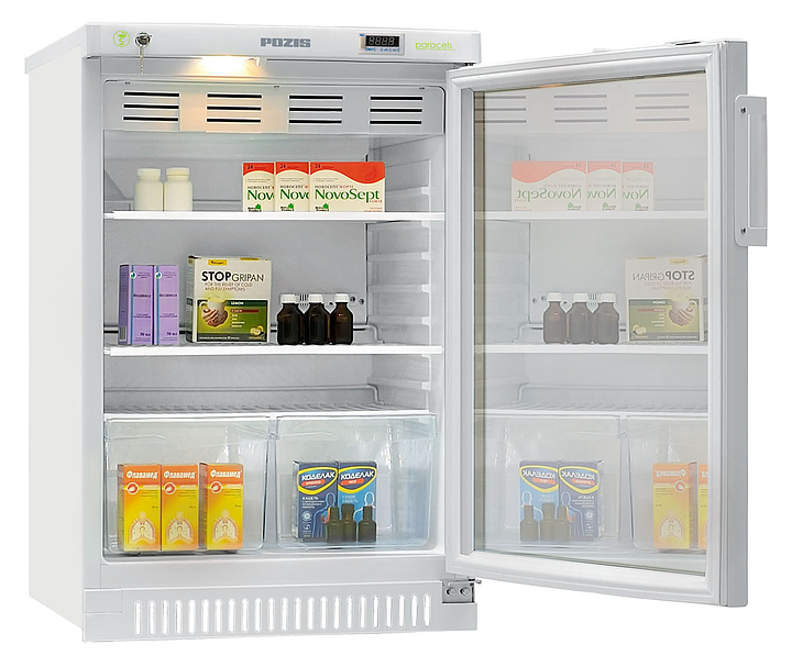 Фармацевтический холодильник POZIS ХФ-140-3 используется в аптеках, больницах и клиниках для хранения лекарственных препаратов, вакцин, реагентов и биологических препаратов. Модель оснащена стеклянной дверью с ручкой и замком, 3 регулируемыми по высоте полками и 2 пластиковыми контейнерами. Для удобства пользования дисплей, отображающий температуру, располагается над дверью в зоне постоянной видимости. Теплоизоляция корпуса выполнена из пенополиуретана.