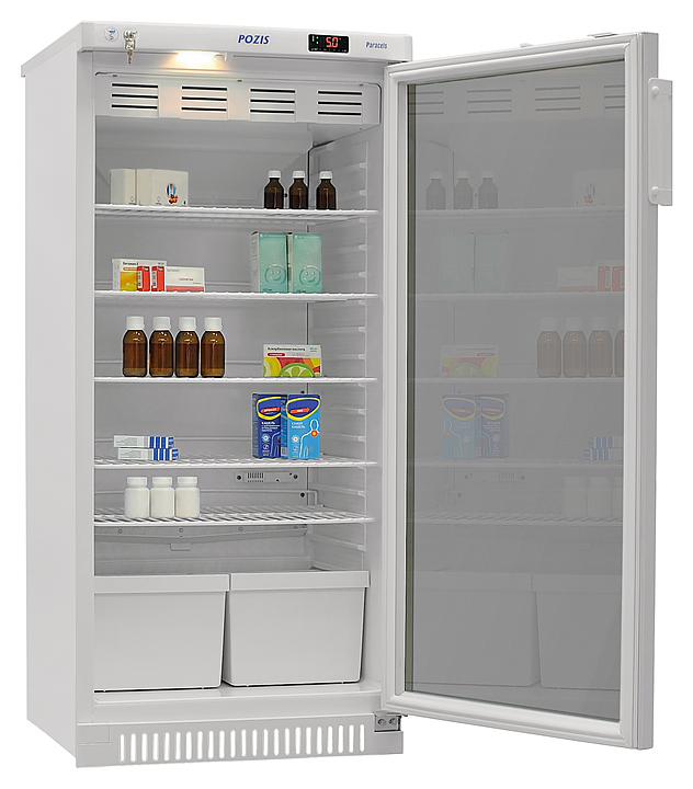 Фармацевтический холодильник POZIS ХФ-250-3 используется в аптеках, больницах и клиниках для хранения лекарственных препаратов, вакцин, реагентов и биологических препаратов. Модель оснащена дверью с тонированным стеклом, ручкой и замком, 2 роликами и 2 регулируемыми опорами. Для удобства пользования дисплей, отображающий температуру, располагается над дверью в зоне постоянной видимости. Теплоизоляция выполнена из пенополиуретана, герметизация дверного проема - из эластичного уплотнителя с магнитной вставкой.