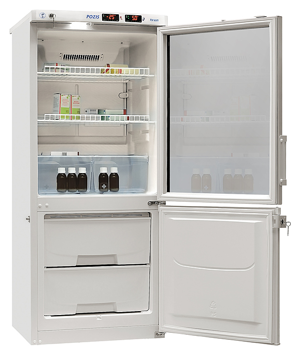 Лабораторный холодильник POZIS ХЛ-250 используется в различных лабораториях, аптеках, больницах и клиниках, на станциях переливания крови для хранения лекарственных препаратов, вакцин, реагентов, образцов, тест-наборов и биологических препаратов. Модель оснащена дверью с тонированным стеклом и металлической дверью с замками, 2 роликами и 2 регулируемыми опорами. Для удобства пользования дисплеи, отображающие температуру, располагаются над дверью в зоне постоянной видимости. Внутренний шкаф и панели дверей выполнены из полимерных материалов с антимикробным покрытием, теплоизоляция - из пенополиуретана, герметизация дверных проемов - из уплотнителей с магнитными вставками.