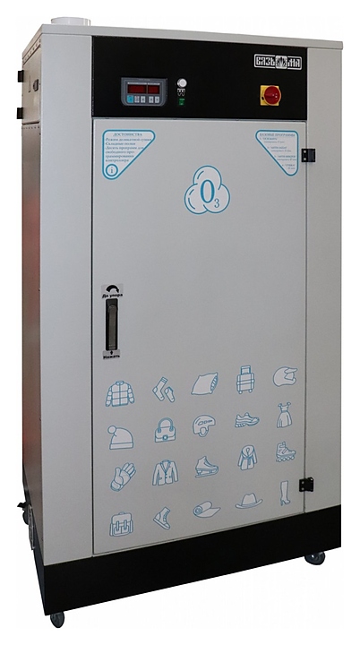Шкаф озонирующий Вязьма ВШО-1000С используется в прачечных, образовательных, оздоровительных заведениях, производственных предприятиях, в поликлиниках, гостиницах, детских садах, общежитиях, больницах, роддомах и воинских частях для гигиенической антибактериальной обработки и сушки белья, ткани, одежды, меха, обуви, амуниции и формы. Модель оснащена контроллером для установки программ озонирования, генератором озона, поворотными колесами и перекладиной для одежды.