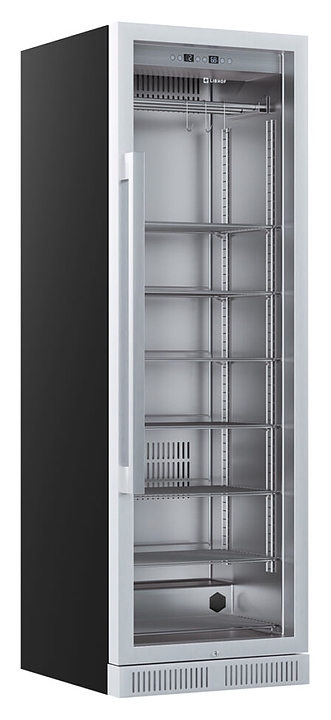 Шкаф Libhof Dry Aged DA-415 предназначен для сухого вызревания говядины, а также производства мясных закусок, колбасных изделий и сыра на предприятиях пищевой промышленности, общественного питания и в домашних условиях. Модель оснащена сенсорной панелью управления, цифровым дисплеем и распашной дверью с внутренними петлями. Корпус и полки выполнены из металла, дверь - из хромированной рамы и стекла с защитой от ультрафиолета.