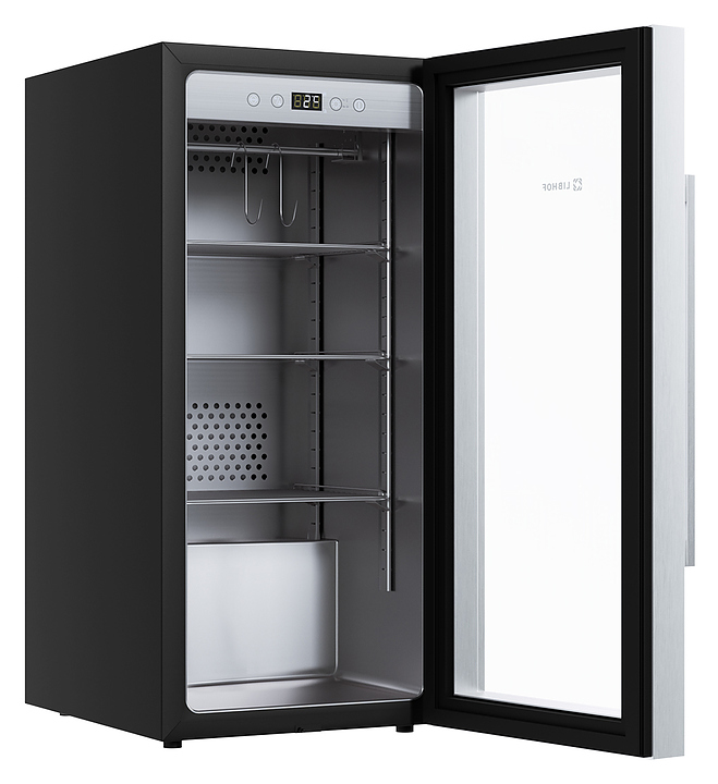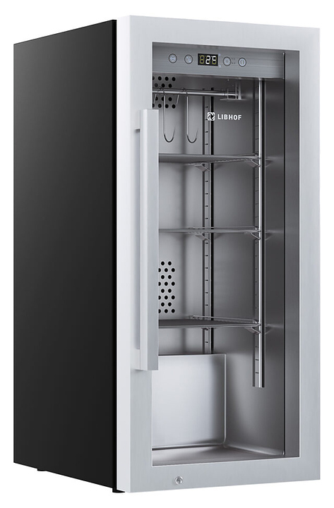 Шкаф Libhof Dry Aged DA-75 предназначен для сухого вызревания говядины, а также производства мясных закусок, колбасных изделий и сыра на предприятиях пищевой промышленности, общественного питания и в домашних условиях. Модель оснащена сенсорной панелью управления, цифровым дисплеем и распашной дверью с внутренними петлями. Корпус и полки выполнены из металла, дверь - из хромированной рамы и стекла с защитой от ультрафиолета.