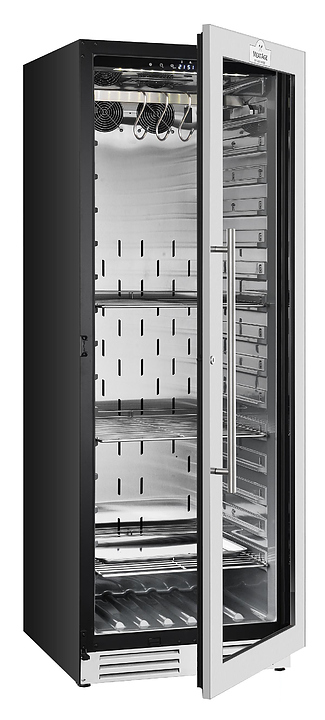 Шкаф для мяса MeatAge VI180 предназначен для охлаждения и вызревания мяса, ветчины и салями в частных домах, квартирах, отелях и офисах. Модель оснащена акустической сигнализацией и запираемой дверью. Корпус и комплектующие выполнены из нержавеющей стали AISI 304, дверца - из ударопрочного закаленного стекла.