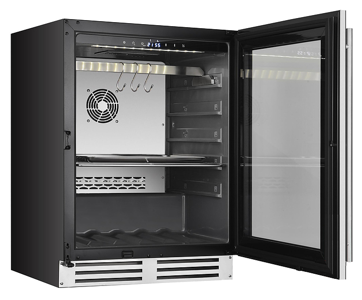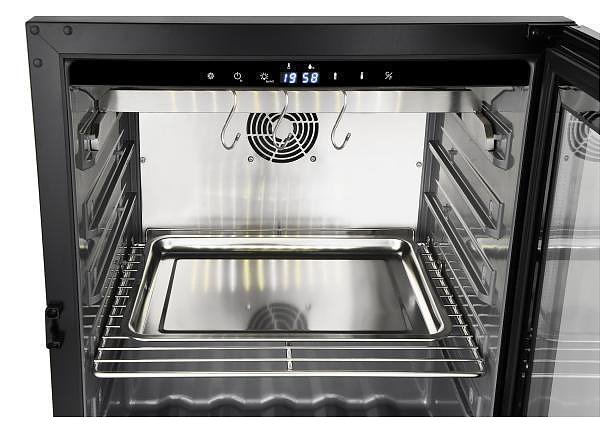 Шкаф для мяса MeatAge VI46 предназначен для охлаждения и вызревания мяса, ветчины и салями в частных домах, квартирах, отелях и офисах. Модель оснащена акустической сигнализацией и запираемой дверью. Корпус и комплектующие выполнены из нержавеющей стали AISI 304, дверца - из ударопрочного закаленного стекла.