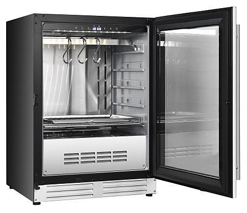 Шкаф для мяса MeatAge VI60 WT предназначен для охлаждения и вызревания мяса, ветчины и салями в частных домах, квартирах, отелях и офисах. Модель оснащена акустической сигнализацией и запираемой дверью. Корпус и комплектующие выполнены из нержавеющей стали AISI 304, дверца - из ударопрочного закаленного стекла.