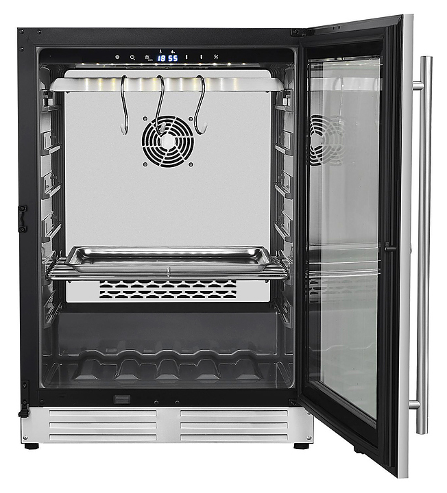 Шкаф для мяса MeatAge VI60 предназначен для охлаждения и вызревания мяса, ветчины и салями в частных домах, квартирах, отелях и офисах. Модель оснащена акустической сигнализацией и запираемой дверью. Корпус и комплектующие выполнены из нержавеющей стали AISI 304, дверца - из ударопрочного закаленного стекла.