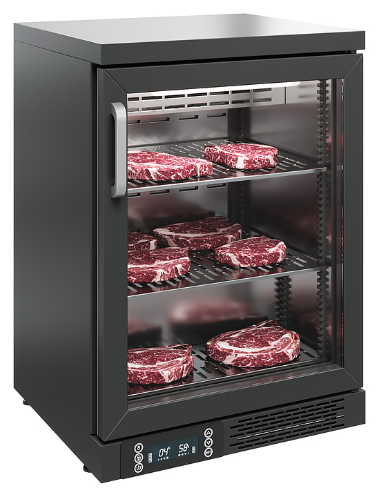 Холодильный шкаф POLAIR CS101-Meat Black предназначен для создания оптимальных условий хранения и дозревания мяса на предприятиях общественного питания и торговли. Внутренние обшивки корпуса выполнены из нержавеющей стали, внешние обшивки корпуса - из стали с полимерным покрытием. Оборудование рассчитано на работу при температуре окружающей среды до 32°С и относительной влажности от 60 до 80 %.