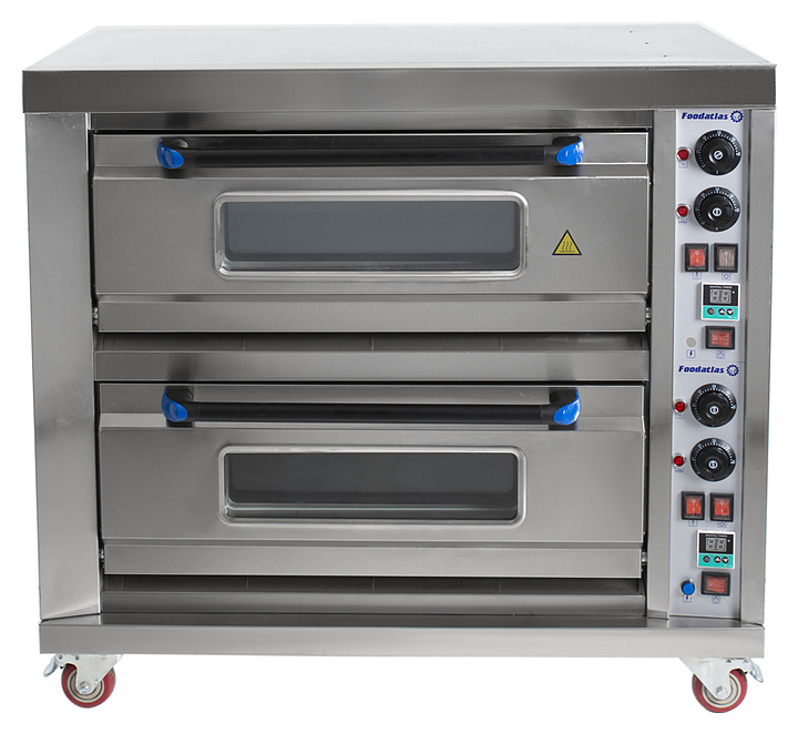 Хлебопекарная печь Foodatlas HEO-22S используется на предприятиях общественного питания и торговли для выпечки широкого ассортимента хлебобулочных и кондитерских изделий: хлеба пшеничного, ржано-пшеничного формового и подового, хлебобулочной продукции, мучных кондитерских изделий, просфор, куличей и приготовления мясных, рыбных, овощных и других блюд. Модель оснащена 2 камерами с каменными подами.