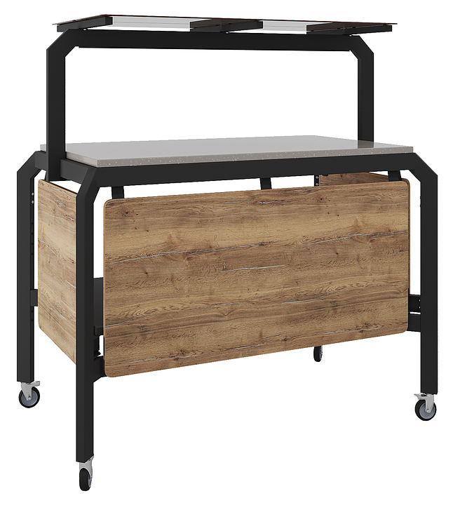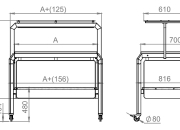 Стол нейтральный Кобор AN85 предназначен для демонстрации, кратковременного хранения и раздачи готовых блюд: салатов, закусок, кондитерских изделий и напитков, и чистых тарелок в составе линий раздачи или самообслуживания в кафе, ресторанах и фудкортах, на предприятиях общественного питания и торговли. Модель оснащена полкой-надстройкой со стеклом и поворотными колесами для мобильности, 2 колеса оснащены тормозом. Сварной каркас выполнен из профиля сечением 60х30, покрытого порошковой краской, внешний корпус и столешница - из ЛДСП.