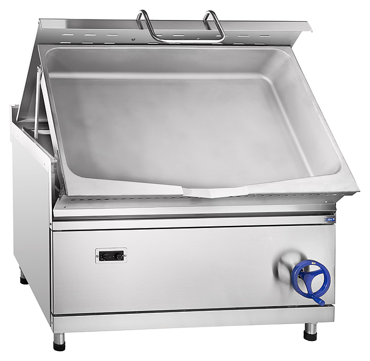 Опрокидывающаяся сковорода Abat ГСК-90-0,67-150 предназначена для приготовления мяса, рыбы, овощей и других продуктов методом жарки, тушения, припускания, пассерования, приготовления на пару и во фритюре на предприятиях общественного питания и торговли. Модель оснащена цельнотянутой сварной чашей, газ-контролем, пьезорозжигом, фиксацией ручки крышки в любом положении и регулируемыми по высоте ножками.