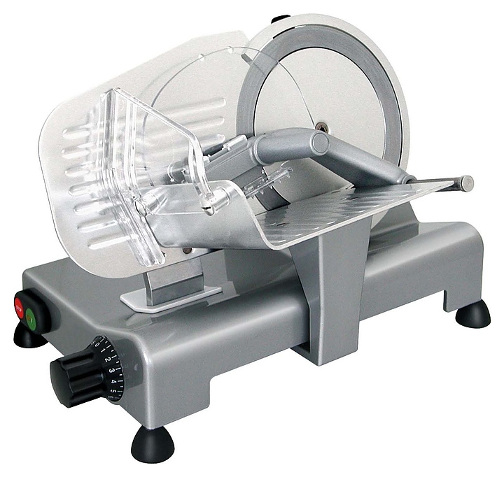 Профессиональный мотор с функцией принудительной вентиляции исключает возможность перегрева устройства, а также делает его работу практически бесшумной. Поддон для продуктов, перемычка для регулирования толщины среза и кольцо фиксации лезвия выполнены из алюминия, отполированного путем анодирования, что обеспечивает их гигиеническую чистоту и защиту от коррозии.