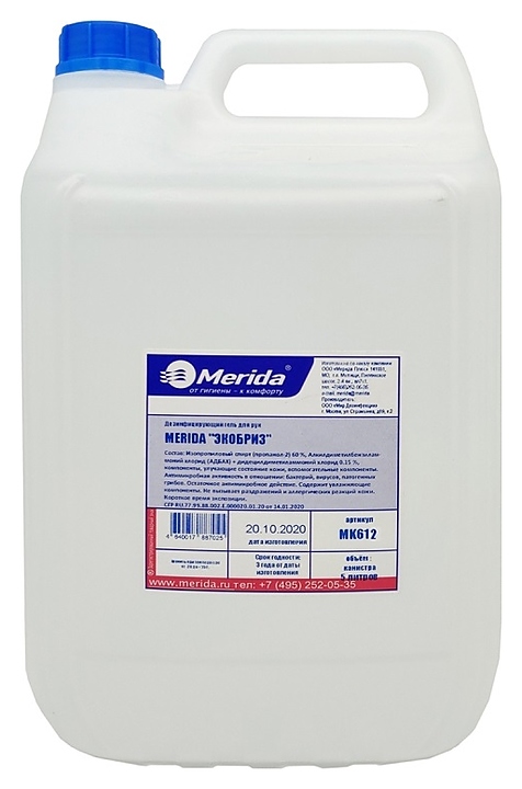 ГЕЛЬ ДЕЗИНФИЦИРУЮЩИЙ ДЛЯ РУК MERIDA ЭКОБРИЗ MK612, 5 Л