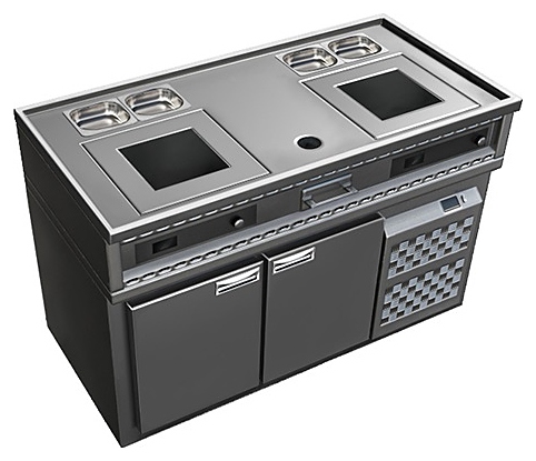 2 нейтральные ванны вместимостью 3 емкости GN 1/6 глубиной 150 мм каждая