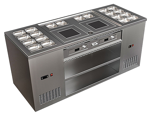 2 охлаждаемые ванны вместимостью 8 емкостей GN 1/6 глубиной 150 мм каждая