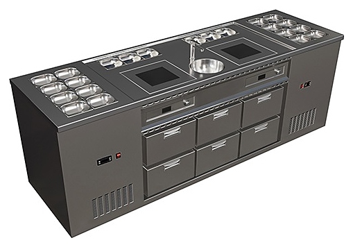 Рабочая зона | 2 охлаждаемые ванны, 2 индукционных плиты |