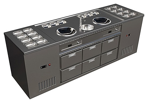 Рабочая зона | 2 wok-плиты, 2 охлаждаемые ванны |