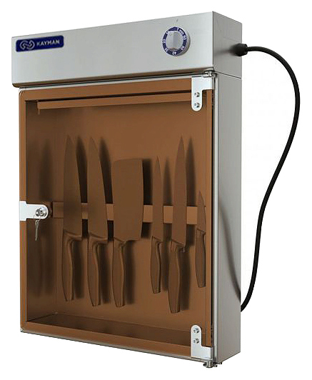 Стерилизатор для ножей KAYMAN СН-1-М А используется на предприятиях общественного питания и торговли для дезинфекции ножей и других инструментов. Модель оснащена ртутной лампой, таймером от 0 до 60 минут и дверью с замком. Корпус выполнен из нержавеющей стали AISI430, дверца - из тонированного стекла, обеспечивающего защиту персонала от ультрафиолетовых лучей, держатель - из нержавеющей стали, колба - из увиолевого стекла.