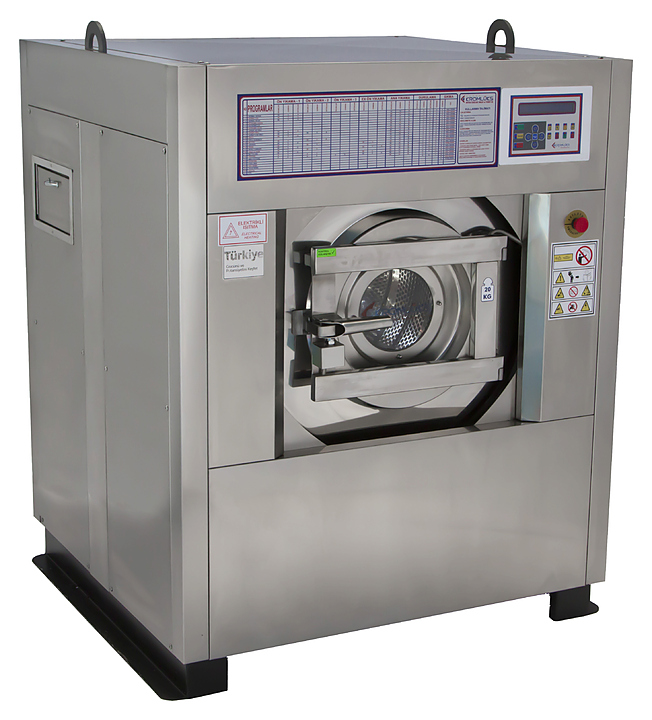 Стирально-отжимная машина Kromluks KOCYS-B/15 используется в прачечных образовательных, оздоровительных заведений, производственных предприятий, в поликлиниках, гостиницах, детских садах, общежитиях, больницах, роддомах и воинских частях для стирки, полоскания и отжима белья и одежды. Модель оснащена подрессоренной подвеской барабана. Все поверхности, соприкасающиеся с бельем и водой, а также облицовка корпуса выполнены из нержавеющей стали AISI 304.