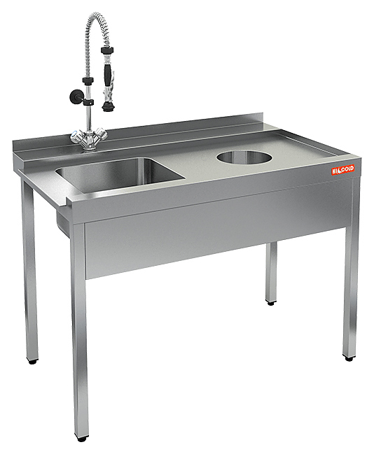 Входной стол HICOLD НСДПМ-12/7,4БП предназначен для разбора, предварительного ополаскивания и временного хранения грязной посуды и столовых приборов перед их загрузкой в посудомоечную машину на предприятиях общественного питания и торговли. Корпус и столешница выполнены из нержавеющей стали AISI 430.